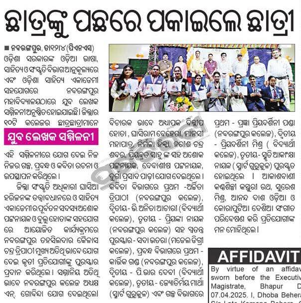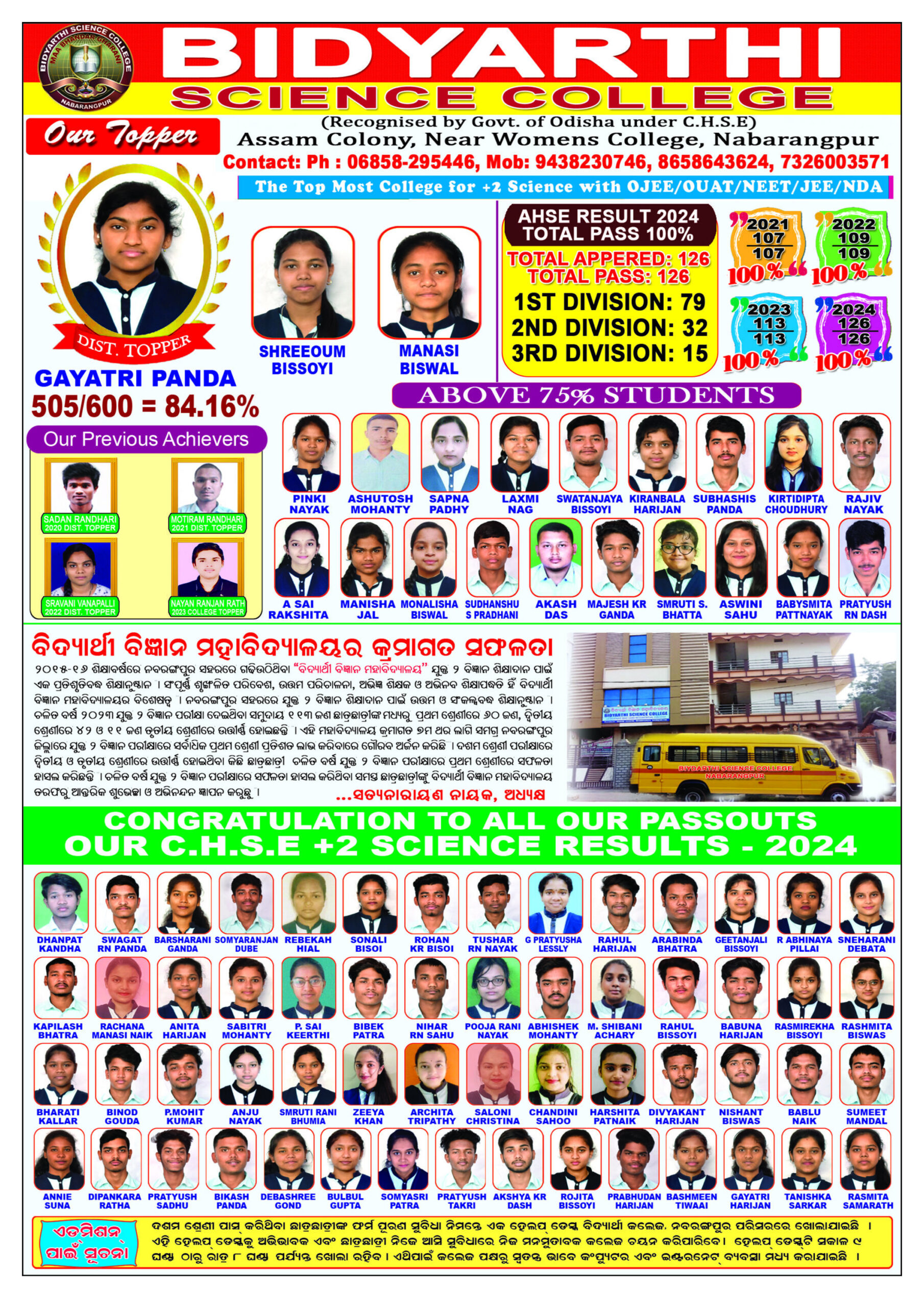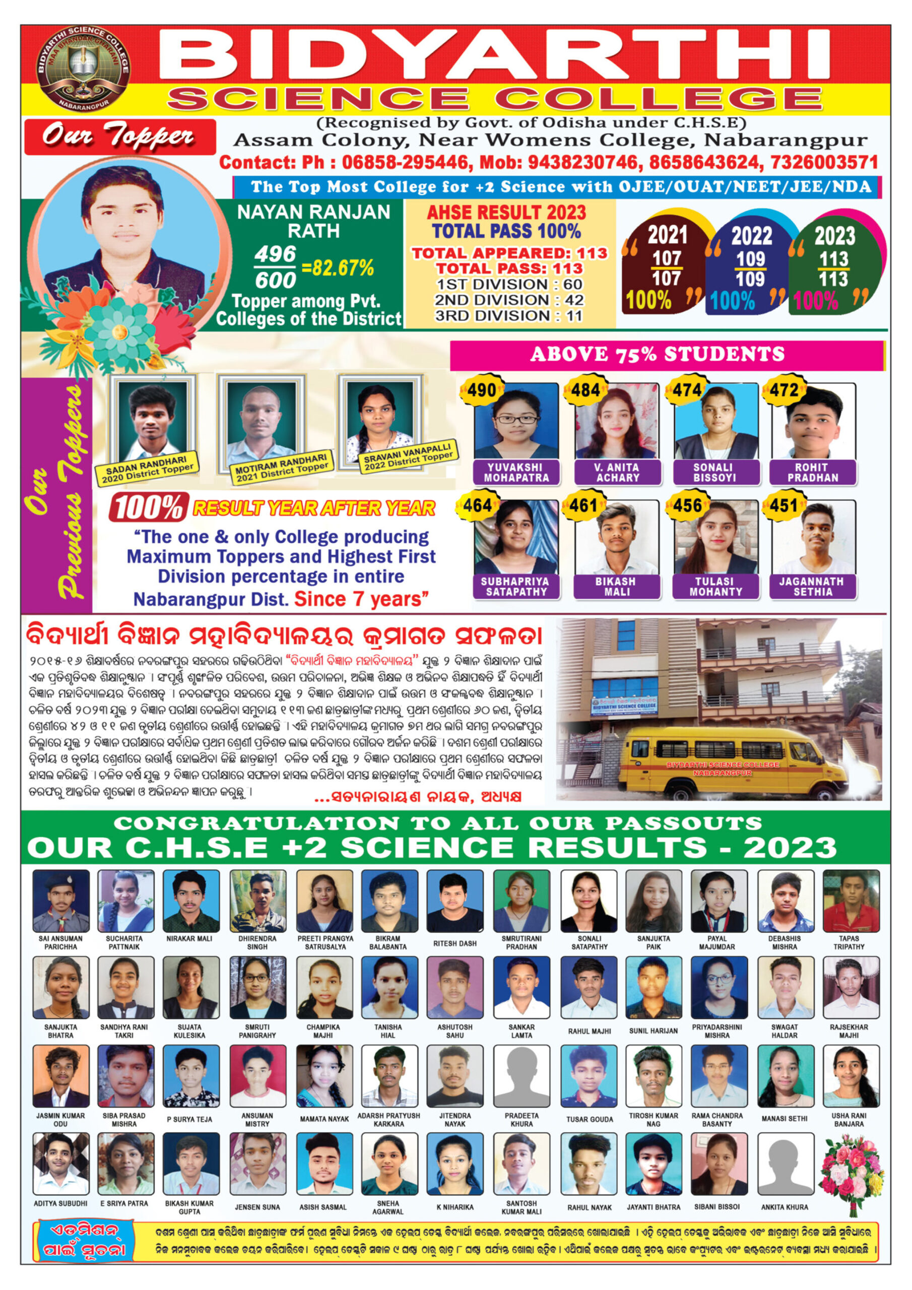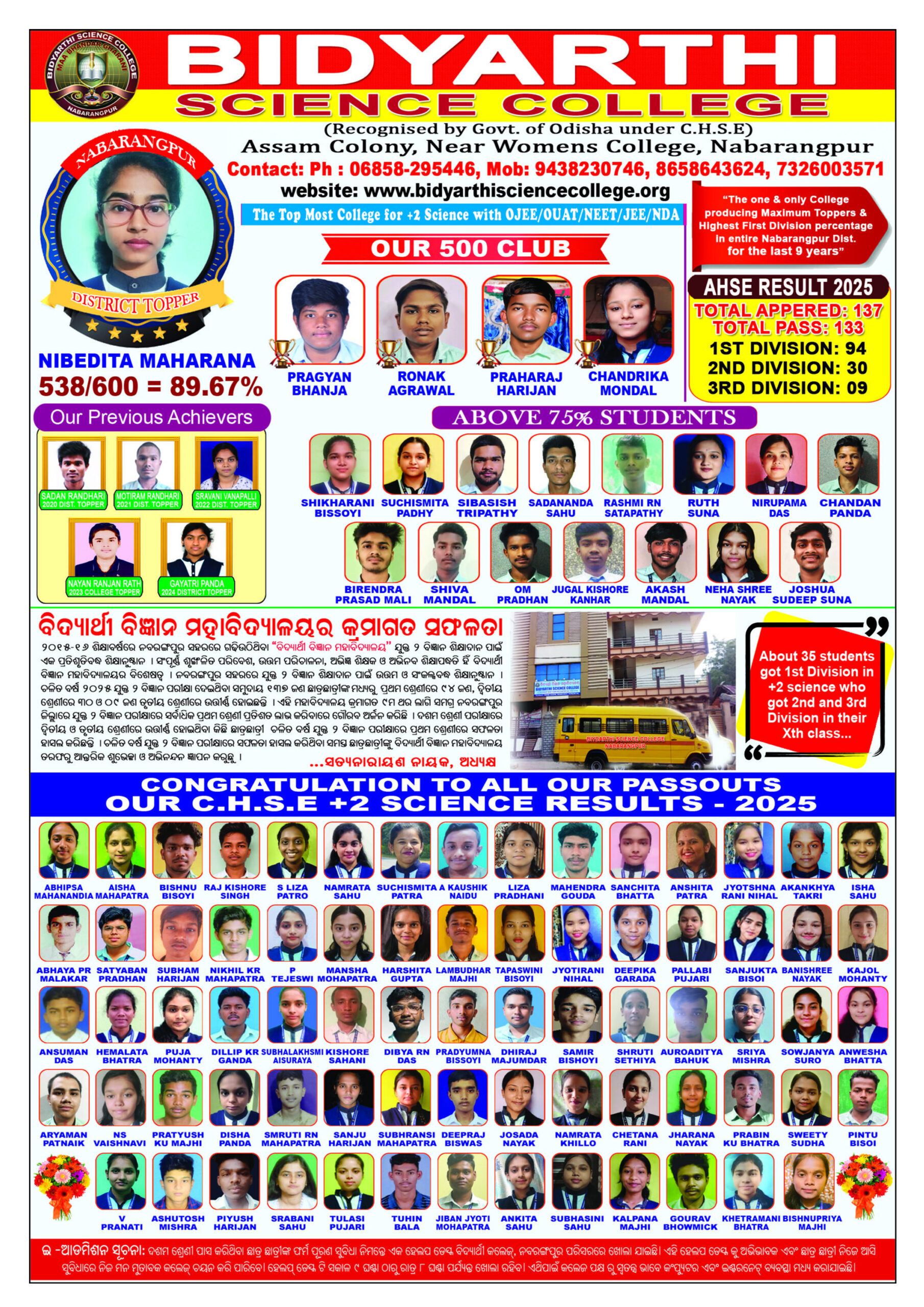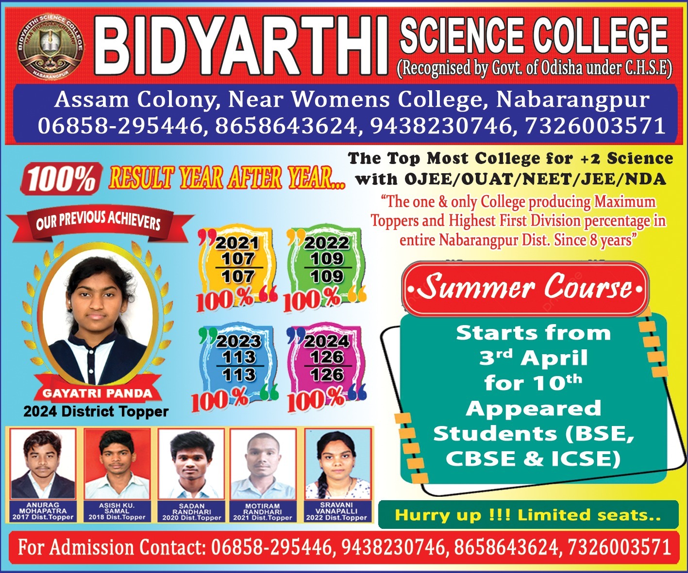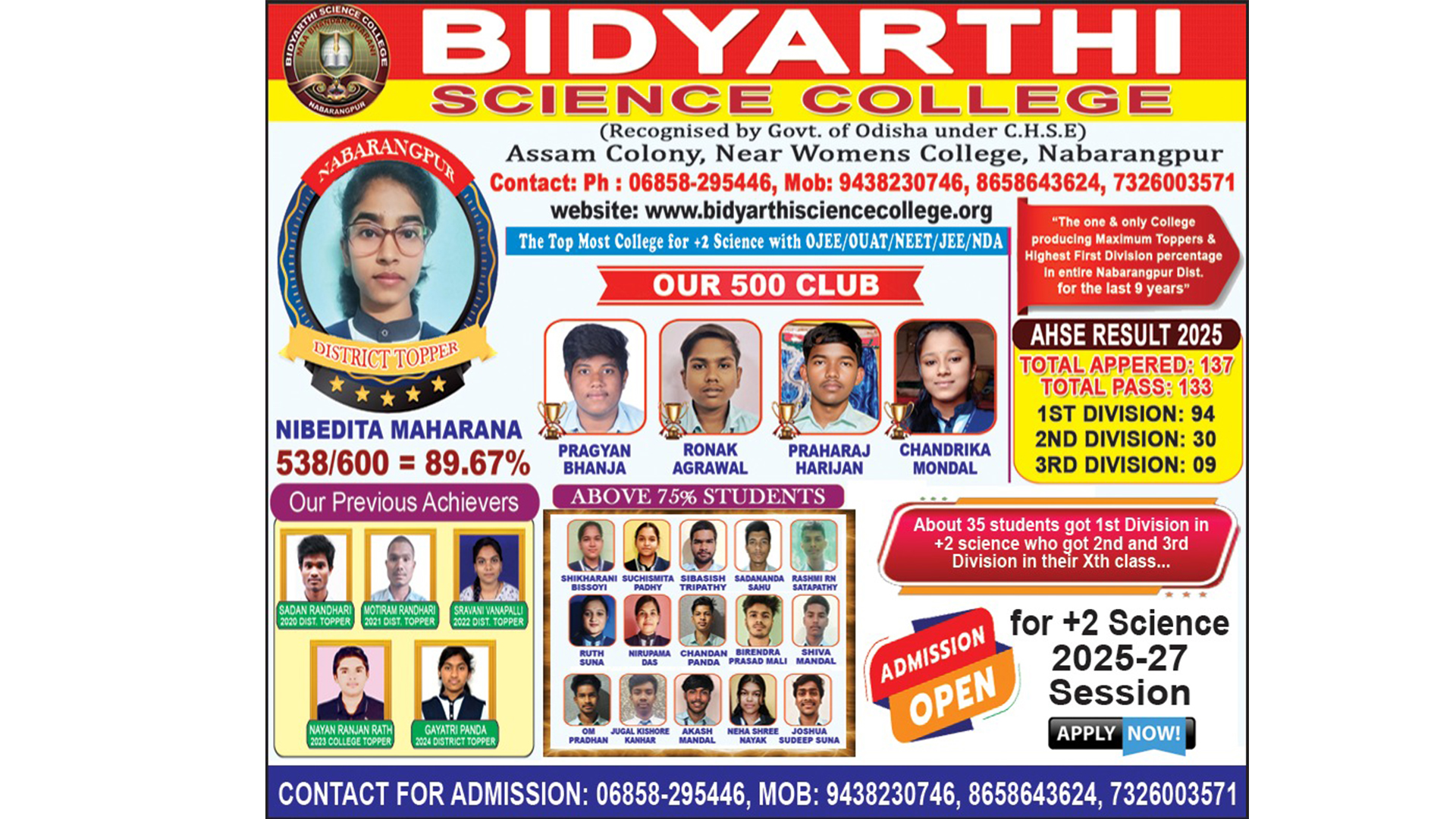 Bidyarthi Science College is one of the best +2 Science college of Nabarangpur, providing day-cum-residential facility for the students. The college is located very near to the Nabarangpur Bus Stand, and the location is Maitree Vihar, Assam Colony, Nabarangpur, Odisha – 764059. Phone: 094382 30746
