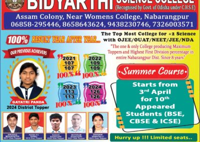 At Bidyarthi Science College, we believe in nurturing young talents into tomorrow’s scientists, engineers, doctors, and innovators. Established with a mission to provide focused and quality +2 Science education, the college has become a trusted name across Odisha for academic excellence, result-oriented teaching, and value-based learning