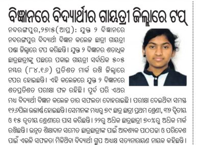 The college started functioning from the academic year 2015 after obtaining permission for +2 Science from the Department of Higher Education, Odisha, vide office order No. [insert number], dated [insert date], of the Regional Director of Education, Berhampur, with a sanctioned strength of 64 seats in the subjects English, MIL (Odia/Hindi/Alternative English/Sanskrit), Physics, Chemistry, Mathematics, Biology, and 32 seats in Information Technology.